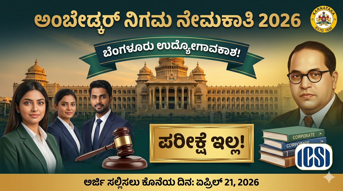 The Government of Karnataka has announced a prestigious recruitment drive through the Dr. B.R. Ambedkar Development Corporation (ADCL) for the year 2026. This notification is a golden opportunity for legal professionals and qualified company secretaries to serve in a high-ranking state-owned organization. Based in the heart of Bengaluru, these roles offer a platform to contribute to the administrative and legal excellence of a corporation dedicated to social upliftment.