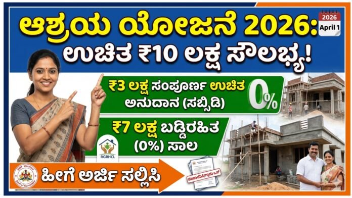 Ashraya ಆಶ್ರಯ ಯೋಜನೆ 2026: ₹10 ಲಕ್ಷದ ಮನೆ ಕನಸು ಸಾಕಾರ! ಉಚಿತ ₹3 ಲಕ್ಷ + ₹7 ಲಕ್ಷ ಬಡ್ಡಿರಹಿತ ಸಾಲ – ಸಂಪೂರ್ಣ ಮಾಹಿತಿ