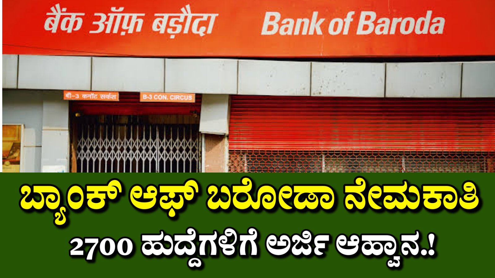 ಬ್ಯಾಂಕ್ ಆಫ್ ಬರೋಡಾದಲ್ಲಿ 2,700 ಅಪ್ರೆಂಟಿಸ್ ಹುದ್ದೆಗಳ ನೇಮಕಾತಿ – ಪದವೀಧರರಿಗೆ ಸುವರ್ಣಾವಕಾಶ!