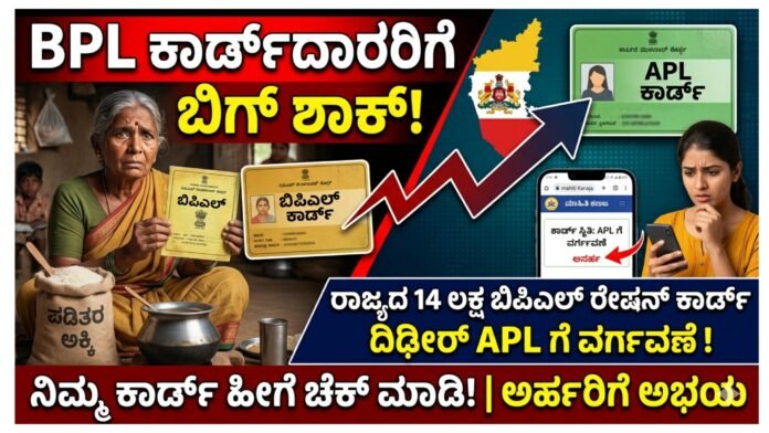 BPL ಕಾರ್ಡ್ದಾರರಿಗೆ ದೊಡ್ಡ ಅಪ್ಡೇಟ್: 14 ಲಕ್ಷ ರೇಷನ್ ಕಾರ್ಡ್ಗಳು APL ಗೆ ವರ್ಗಾವಣೆ – ನಿಮ್ಮ ಕಾರ್ಡ್ ಸ್ಟೇಟಸ್ ತಕ್ಷಣ ಚೆಕ್ ಮಾಡಿ!