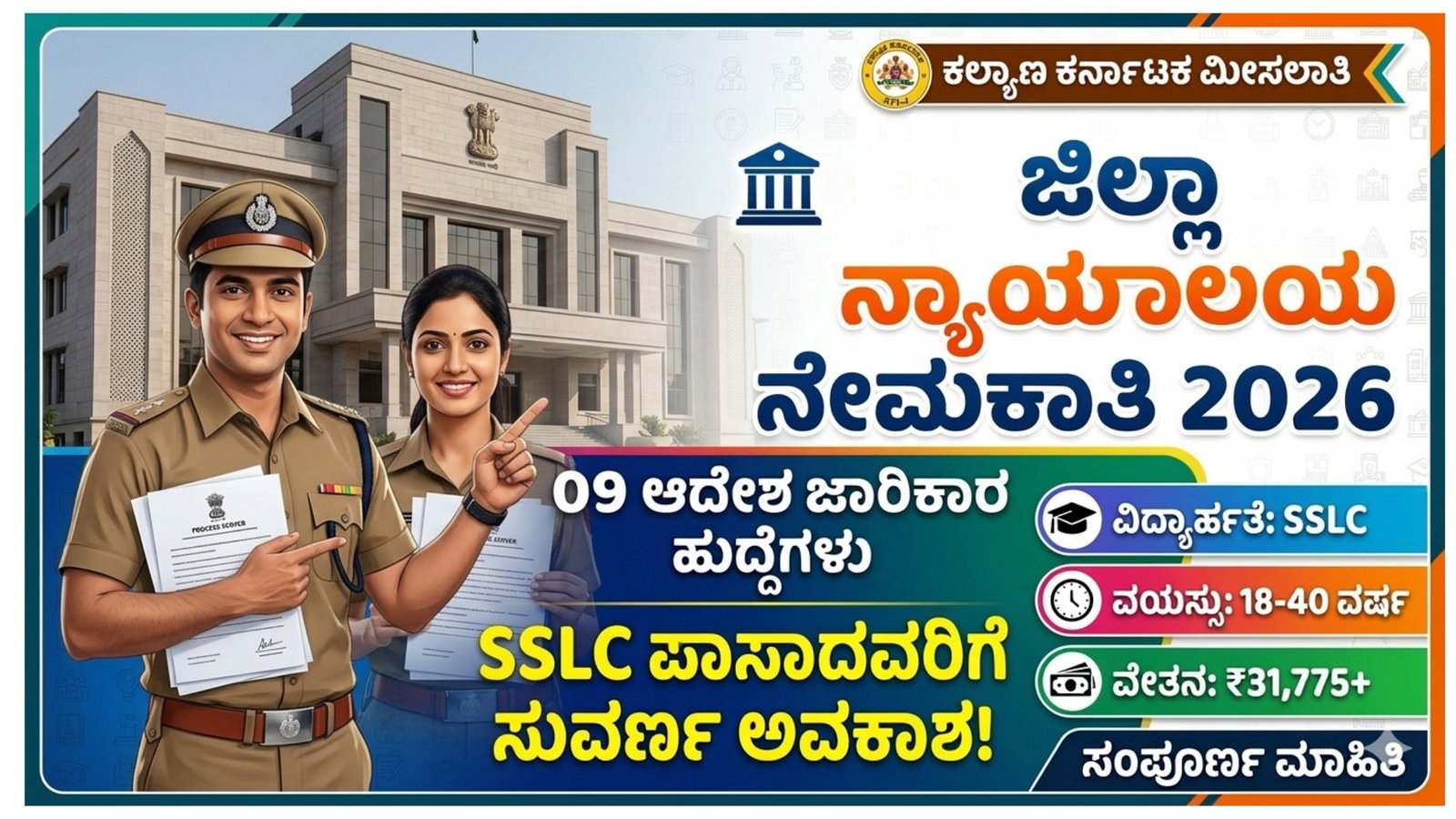 Court ಜಿಲ್ಲಾ ನ್ಯಾಯಾಲಯ ನೇಮಕಾತಿ 2026 – ಆದೇಶ ಜಾರಿಕಾರ ಹುದ್ದೆಗಳು | ಸಂಪೂರ್ಣ ಮಾಹಿತಿ