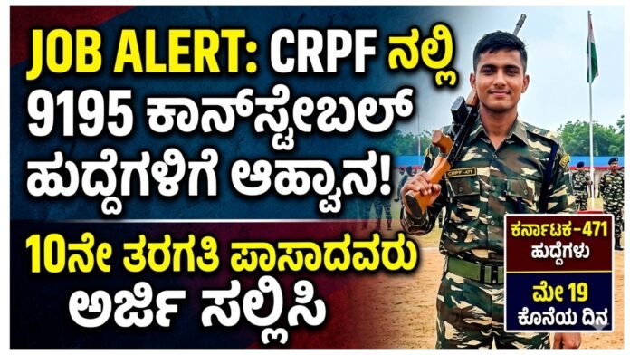 🚨 CRPF Recruitment 2026: 10ನೇ ತರಗತಿ ಪಾಸ್ ಆದವರಿಗೆ 9000+ ಸರ್ಕಾರಿ ಉದ್ಯೋಗ ಅವಕಾಶ – ಸಂಪೂರ್ಣ ಮಾಹಿತಿ ಇಲ್ಲಿದೆ!