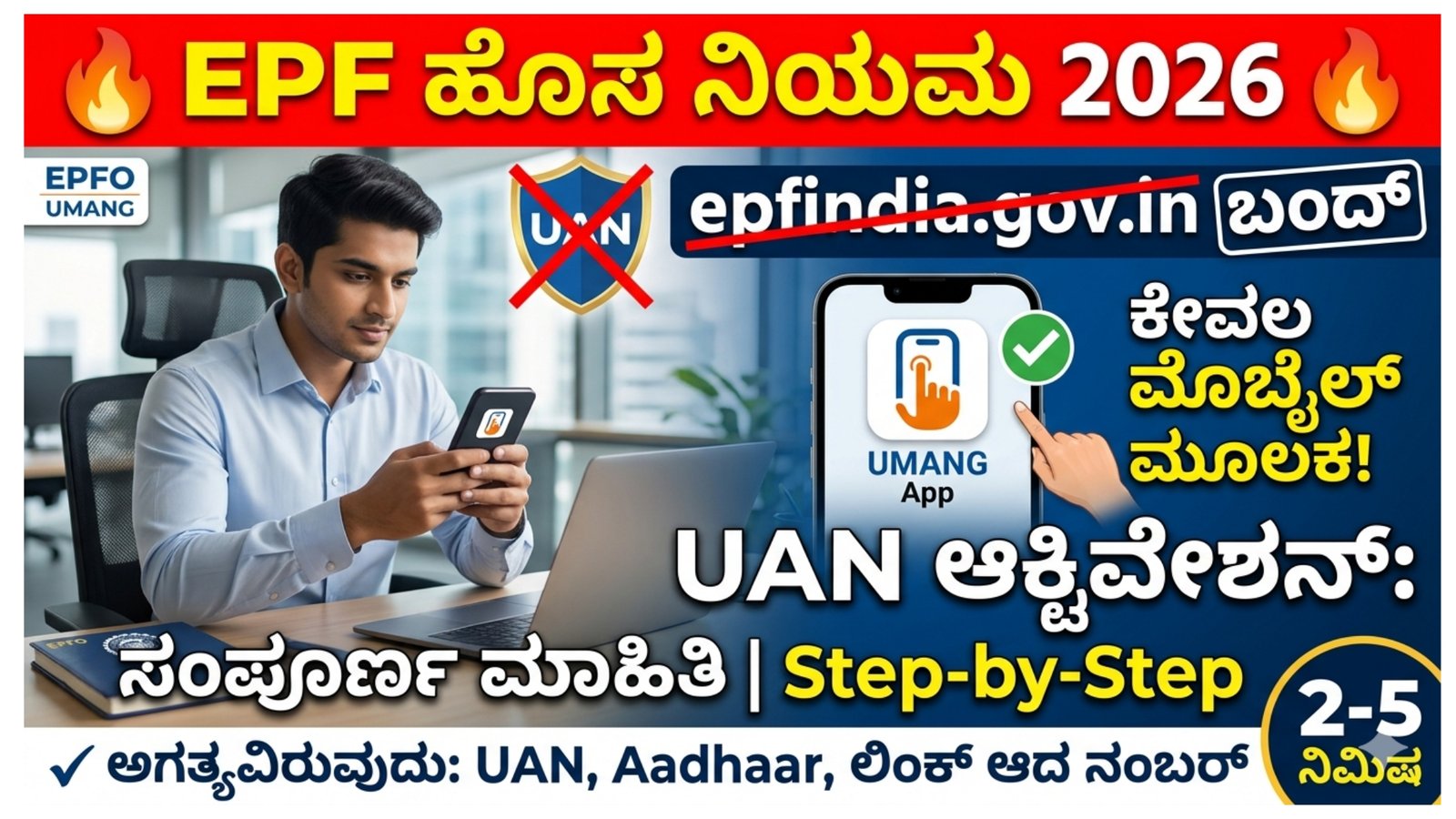 ಭಾರತದಲ್ಲಿ ಕೆಲಸ ಮಾಡುವ ಬಹುತೇಕ ಉದ್ಯೋಗಿಗಳಿಗೆ Employee Provident Fund (EPF) ಒಂದು ಪ್ರಮುಖ ಉಳಿತಾಯ ಯೋಜನೆ. ಆದರೆ ಇತ್ತೀಚೆಗೆ Employees’ Provident Fund Organisation (EPFO) ಹೊಸ ಮಹತ್ವದ ಬದಲಾವಣೆಯನ್ನು ಘೋಷಿಸಿದೆ. ಇಷ್ಟು ದಿನ ವೆಬ್ಸೈಟ್ ಮೂಲಕ ಸುಲಭವಾಗಿ ಮಾಡಬಹುದಾಗಿದ್ದ UAN Activation ಈಗ ಸಂಪೂರ್ಣವಾಗಿ ಹೊಸ ವಿಧಾನಕ್ಕೆ ಶಿಫ್ಟ್ ಆಗಿದೆ.