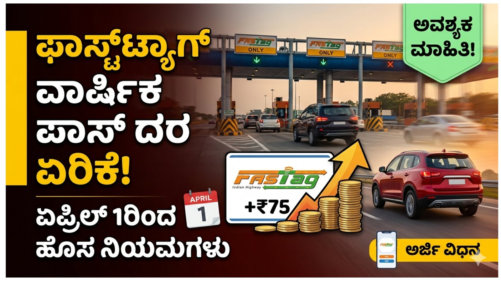 FASTag ವಾಹನ ಸವಾರರಿಗೆ ಮಹತ್ವದ ಮಾಹಿತಿ: ಏಪ್ರಿಲ್ 1ರಿಂದ ಫಾಸ್ಟ್ಟ್ಯಾಗ್ ವಾರ್ಷಿಕ ಪಾಸ್ ದರ ಹೆಚ್ಚಳ – ಹೊಸ ನಿಯಮಗಳು ತಿಳಿದುಕೊಳ್ಳಿ