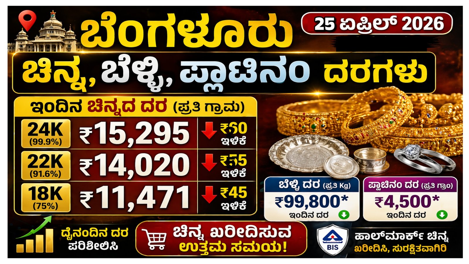 Gold Rate ಬೆಂಗಳೂರು ಚಿನ್ನ–ಬೆಳ್ಳಿ–ಪ್ಲಾಟಿನಂ ದರಗಳು (24 ಏಪ್ರಿಲ್ 2026)