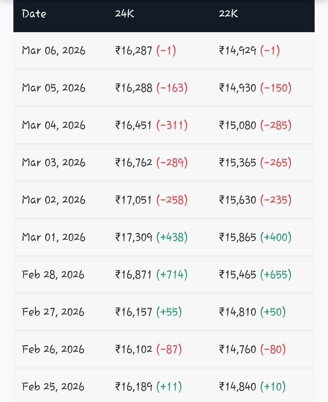 | 24 ಕ್ಯಾರೆಟ್ ಚಿನ್ನ | ₹16,353 |