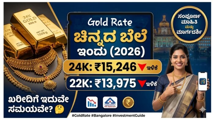 ಬೆಂಗಳೂರು (Bengaluru) ನಗರದಲ್ಲಿ ಇಂದಿನ ಚಿನ್ನದ ದರಗಳಲ್ಲಿ ಸ್ವಲ್ಪ ಇಳಿಕೆ ಕಂಡುಬಂದಿದೆ. ಚಿನ್ನ ಖರೀದಿ ಮಾಡಲು ಯೋಚಿಸುತ್ತಿರುವವರಿಗೆ ಇದು ಒಳ್ಳೆಯ ಅವಕಾಶವಾಗಬಹುದು. ಈ ಲೇಖನದಲ್ಲಿ ಇಂದಿನ 24K, 22K, 18K ಚಿನ್ನದ ದರಗಳು, ನಿನ್ನೆಗಿನ ದರಗಳ ಹೋಲಿಕೆ, ಮಾರುಕಟ್ಟೆ ಪ್ರವೃತ್ತಿ, ಹಾಗೂ ಖರೀದಿ ಸಲಹೆಗಳನ್ನು ಸಂಪೂರ್ಣವಾಗಿ ತಿಳಿದುಕೊಳ್ಳಬಹುದು.
