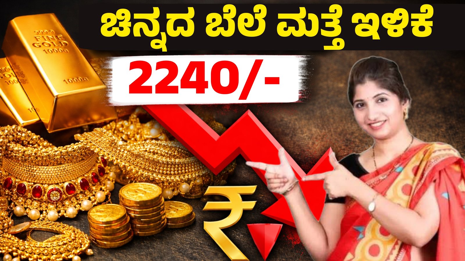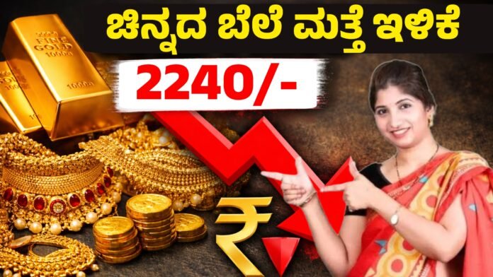 ಚಿನ್ನದ ಬೆಲೆ ಇಂದು 1 ಗ್ರಾಂ ಗೆ 224 ರೂಪಾಯಿ ಕಡಿಮೆ ಆಗಿದೆ. 10 ಗ್ರಾಂ ಗೆ 2240 ಸಾವಿರ ಕಡಿಮೆ ಆಗಿದೆ.
