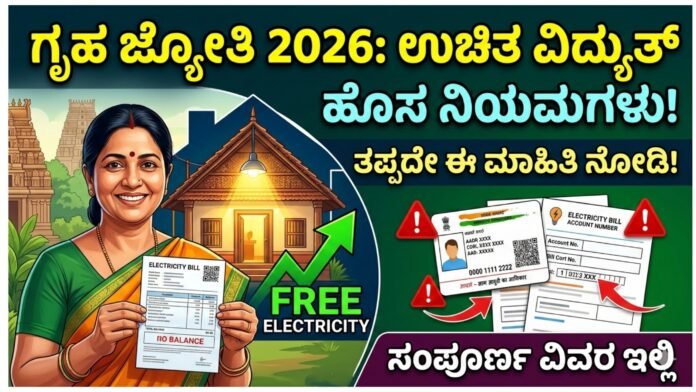 Gruha Jyothi Scheme ಗೃಹ ಜ್ಯೋತಿ ಯೋಜನೆ 2026: ಉಚಿತ ವಿದ್ಯುತ್ ಪಡೆಯುವವರಿಗೆ ಸರ್ಕಾರದಿಂದ ಹೊಸ ನಿಯಮಗಳು – ಸಂಪೂರ್ಣ ಮಾಹಿತಿ ಇಲ್ಲಿದೆ