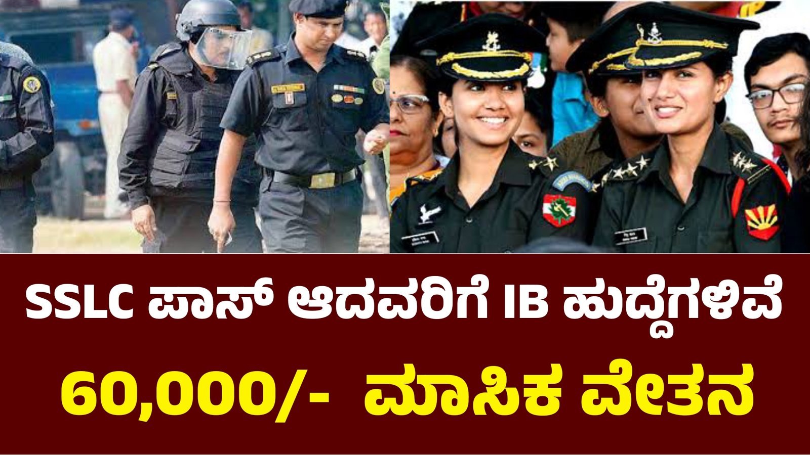 IB 10th ಪಾಸಾದವರಿಗೆ ಸರ್ಕಾರಿ ಹುದ್ದೆ ವೇತನ 60,000/-