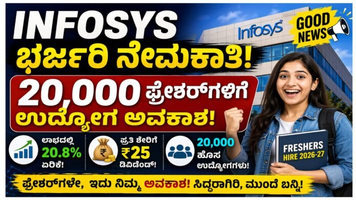 Infosys Hiring 2026: 20,000 ಫ್ರೆಶರ್ಗಳಿಗೆ ಭರ್ಜರಿ ಅವಕಾಶ – ಐಟಿ ಕ್ಷೇತ್ರಕ್ಕೆ ಹೊಸ ಉತ್ಸಾಹ!