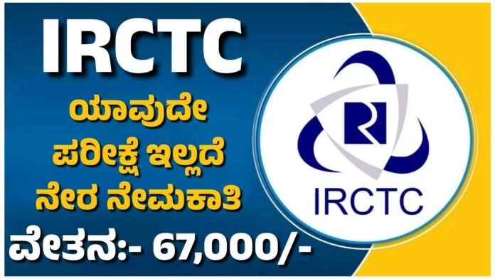 IRCTC ನೇಮಕಾತಿ, ಪರೀಕ್ಷೆಯಿಲ್ಲದೇ ನೇರ ನೇಮಕಾತಿ.! ₹67,000 ವೇತನದ ಭರ್ಜರಿ ಅವಕಾಶ