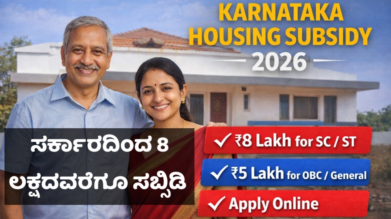 Karnataka Housing Subsidy 2026 – Get ₹8 Lakh for SC/ST & ₹5 Lakh for OBC/General Families