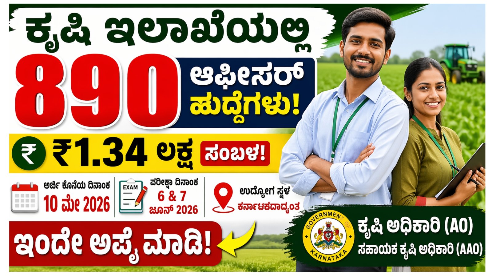 🌾 KEA Recruitment 2026: ಕೃಷಿ ಇಲಾಖೆಯಲ್ಲಿ 890 ಅಧಿಕಾರಿ ಹುದ್ದೆಗಳ ಭರ್ಜರಿ ಅವಕಾಶ – ₹1.34 ಲಕ್ಷದವರೆಗೆ ಸಂಬಳ!