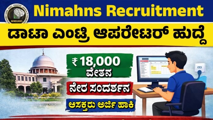 NIMHANS ನೇಮಕಾತಿ 2026: ಬೆಂಗಳೂರಿನಲ್ಲಿ ಡೇಟಾ ಎಂಟ್ರಿ ಆಪರೇಟರ್ ಹುದ್ದೆ – ನೇರ ಸಂದರ್ಶನದ ಮೂಲಕ ಅವಕಾಶ!