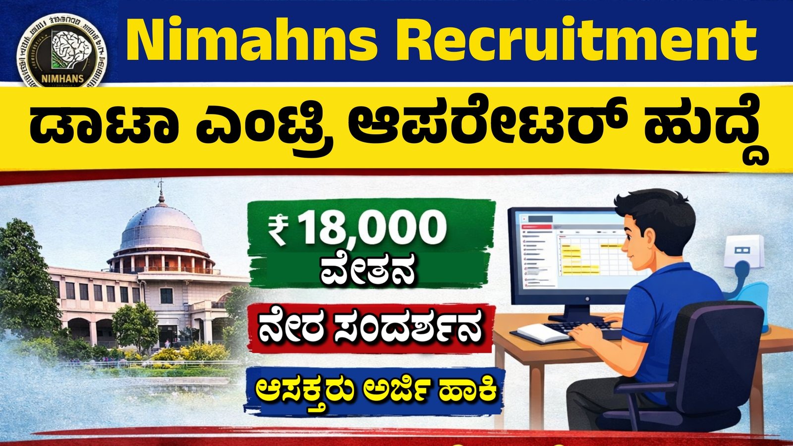 NIMHANS ಡೇಟಾ ಎಂಟ್ರಿ ಆಪರೇಟರ್ ಹುದ್ದೆಗಳ ನೇಮಕಾತಿ.!