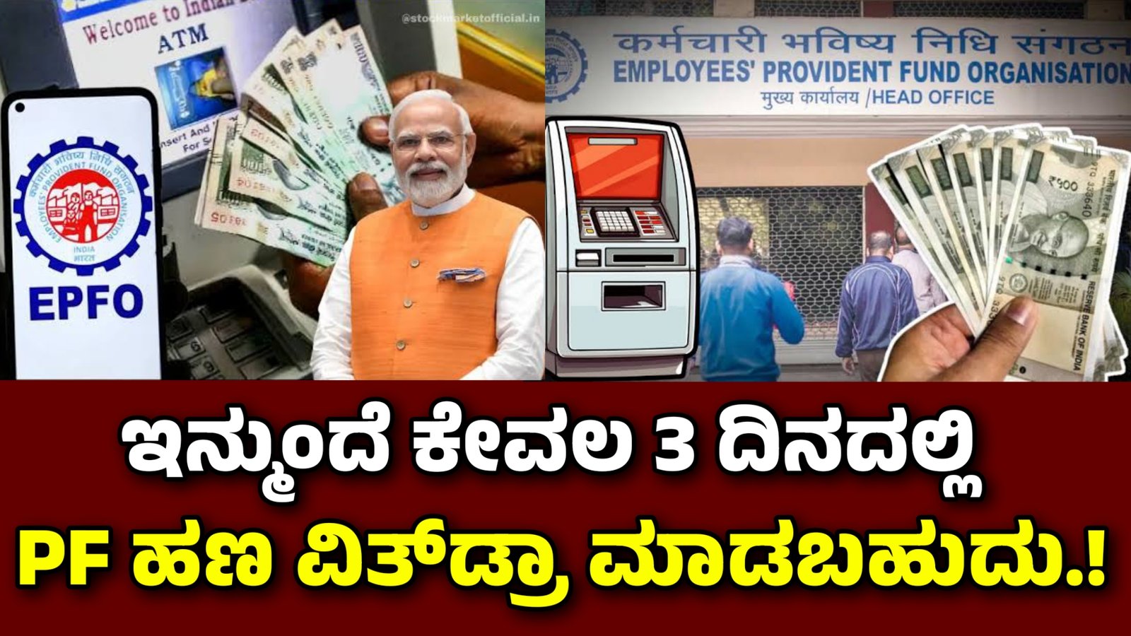 PF ಅಕೌಂಟ್ ಹೊಂದಿರುವ ಉದ್ಯೋಗಿಗಳಿಗೆ ಸಿಹಿ ಸುದ್ದಿ: ಕೇವಲ 3 ದಿನಗಳಲ್ಲಿ PF ಹಣ ವಿತ್ಡ್ರಾ ಮಾಡಬಹುದು.!