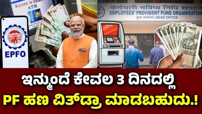 PF ಅಕೌಂಟ್ ಹೊಂದಿರುವ ಉದ್ಯೋಗಿಗಳಿಗೆ ಸಿಹಿ ಸುದ್ದಿ: ಕೇವಲ 3 ದಿನಗಳಲ್ಲಿ PF ಹಣ ವಿತ್ಡ್ರಾ ಮಾಡಬಹುದು.!