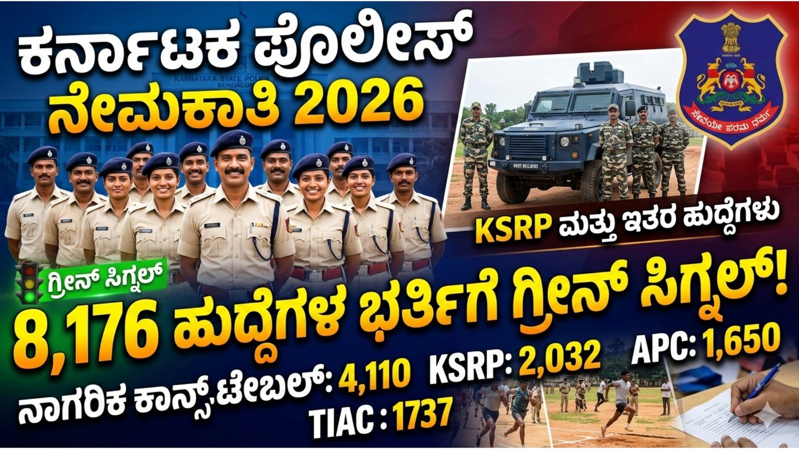 Police ಕರ್ನಾಟಕ ಪೊಲೀಸ್ ನೇಮಕಾತಿ 2026: 8,176 ಕಾನ್ಸ್ಟೇಬಲ್ ಹಾಗೂ ಇತರ ಹುದ್ದೆಗಳ ಭರ್ತಿಗೆ ಸರ್ಕಾರದಿಂದ ಗ್ರೀನ್ ಸಿಗ್ನಲ್