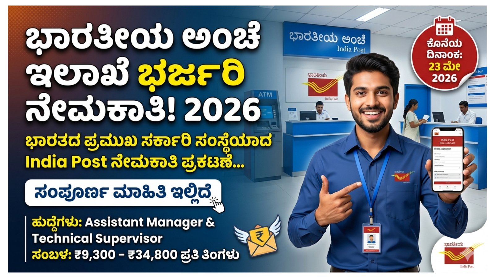 ಭಾರತದ ಪ್ರಮುಖ ಸರ್ಕಾರಿ ಸಂಸ್ಥೆಯಾದ India Post ಇದೀಗ 2026ನೇ ಸಾಲಿನ ನೇಮಕಾತಿ ಪ್ರಕಟಣೆ ಬಿಡುಗಡೆ ಮಾಡಿದೆ. ಉದ್ಯೋಗಕ್ಕಾಗಿ ಕಾಯುತ್ತಿರುವ ಅಭ್ಯರ್ಥಿಗಳಿಗೆ ಇದು ಉತ್ತಮ ಅವಕಾಶವಾಗಿದೆ. ವಿಶೇಷವಾಗಿ ಕರ್ನಾಟಕದ ಮೈಸೂರು ಮತ್ತು ಬೆಂಗಳೂರು ಸೇರಿದಂತೆ ದೇಶದ ವಿವಿಧ ರಾಜ್ಯಗಳಲ್ಲಿ ಕೆಲಸ ಮಾಡಲು ಆಸಕ್ತಿ ಇರುವವರಿಗೆ ಈ ಅವಕಾಶ ಅತ್ಯಂತ ಉಪಯುಕ್ತ.