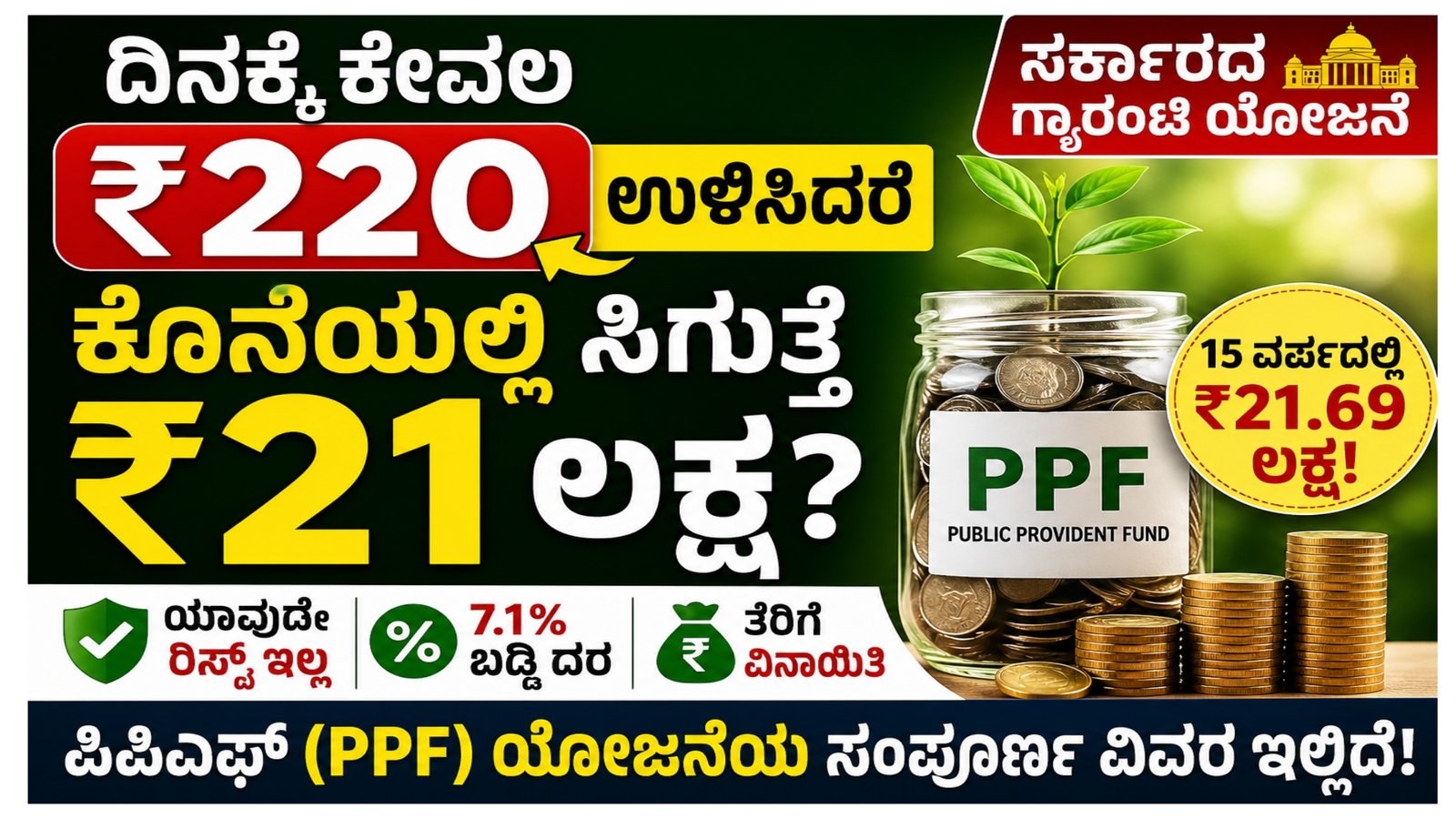 PPF ದಿನಕ್ಕೆ ₹220 ಉಳಿತಾಯ ಮಾಡಿದರೆ ಭವಿಷ್ಯದಲ್ಲಿ ಲಕ್ಷಾಂತರ ಸಂಪತ್ತು – ಪಿಪಿಎಫ್ ಯೋಜನೆಯ ಸಂಪೂರ್ಣ ಗೈಡ್
