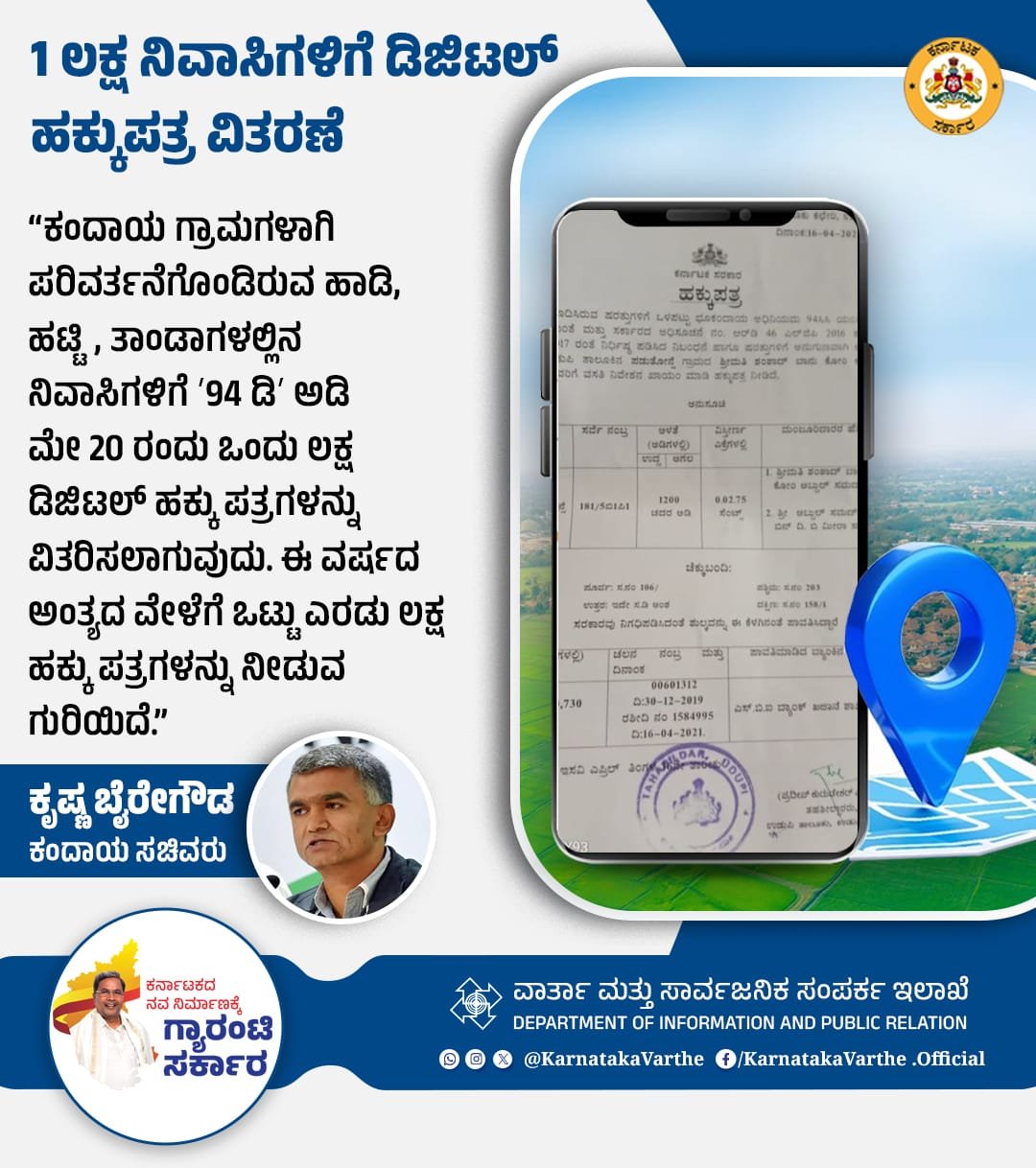 ಕಂದಾಯ ಸಚಿವ ಕೃಷ್ಣ ಬೈರೇಗೌಡರವರ ಪ್ರಕಾರ, ಈ ವರ್ಷದ ಕೊನೆಯಲ್ಲಿ ಒಟ್ಟು 2 ಲಕ್ಷ ಡಿಜಿಟಲ್ ಹಕ್ಕುಪತ್ರಗಳನ್ನು ವಿತರಿಸುವ ಗುರಿ ಇಟ್ಟಿರುವುದಾಗಿ ತಿಳಿಸಿದ್ದಾರೆ. ಇದರೊಂದಿಗೆ, ಗ್ರಾಮೀಣ ಜನತೆಗೆ ಹೆಚ್ಚು ಸಬಲತೆ, ನ್ಯಾಯ ಮತ್ತು ಹಕ್ಕುಗಳ ಕುರಿತು ಸ್ಪಷ್ಟತೆ ದೊರೆಯಲಿದೆ.