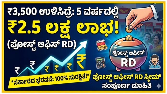 ತಿಂಗಳಿಗೆ ₹3,500 ಉಳಿಸಿದ್ರೆ 5 ವರ್ಷದಲ್ಲಿ ಲಕ್ಷಗಳ ಲಾಭ.! ಪೋಸ್ಟ್ ಆಫೀಸ್ RD ಸ್ಕೀಮ್ ಸಂಪೂರ್ಣ ಮಾಹಿತಿ