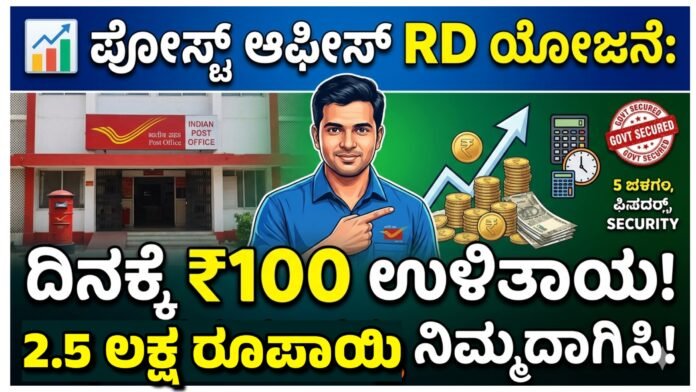 ಪೋಸ್ಟ್ ಆಫೀಸ್ RD ಯೋಜನೆ: ದಿನಕ್ಕೆ ₹100 ಉಳಿತಾಯ ಮಾಡಿ ಲಕ್ಷಾಂತರ ಸಂಪತ್ತು ನಿರ್ಮಿಸಬಹುದು!