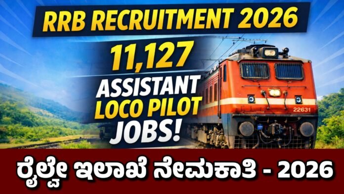 🚆 RRB ನೇಮಕಾತಿ 2026: 11,127 ಅಸಿಸ್ಟೆಂಟ್ ಲೋಕೋ ಪೈಲಟ್ ಹುದ್ದೆಗಳಿಗೆ ಅರ್ಜಿ ಆಹ್ವಾನ