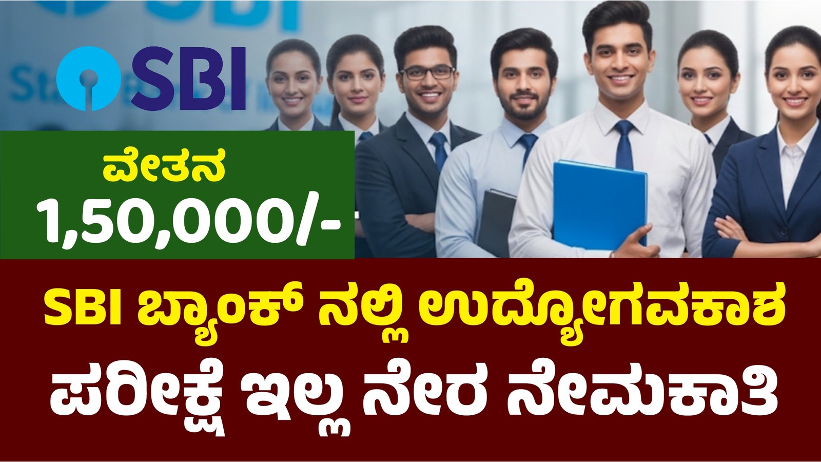SBI ಬ್ಯಾಂಕ್ ನಲ್ಲಿ ಉದ್ಯೋಗವಕಾಶ.! ಪರೀಕ್ಷೆಯಿಲ್ಲದೆ ನೇರ ನೇಮಕಾತಿ – ತಿಂಗಳಿಗೆ ₹1.5 ಲಕ್ಷದವರೆಗೆ ಸಂಬಳ.!