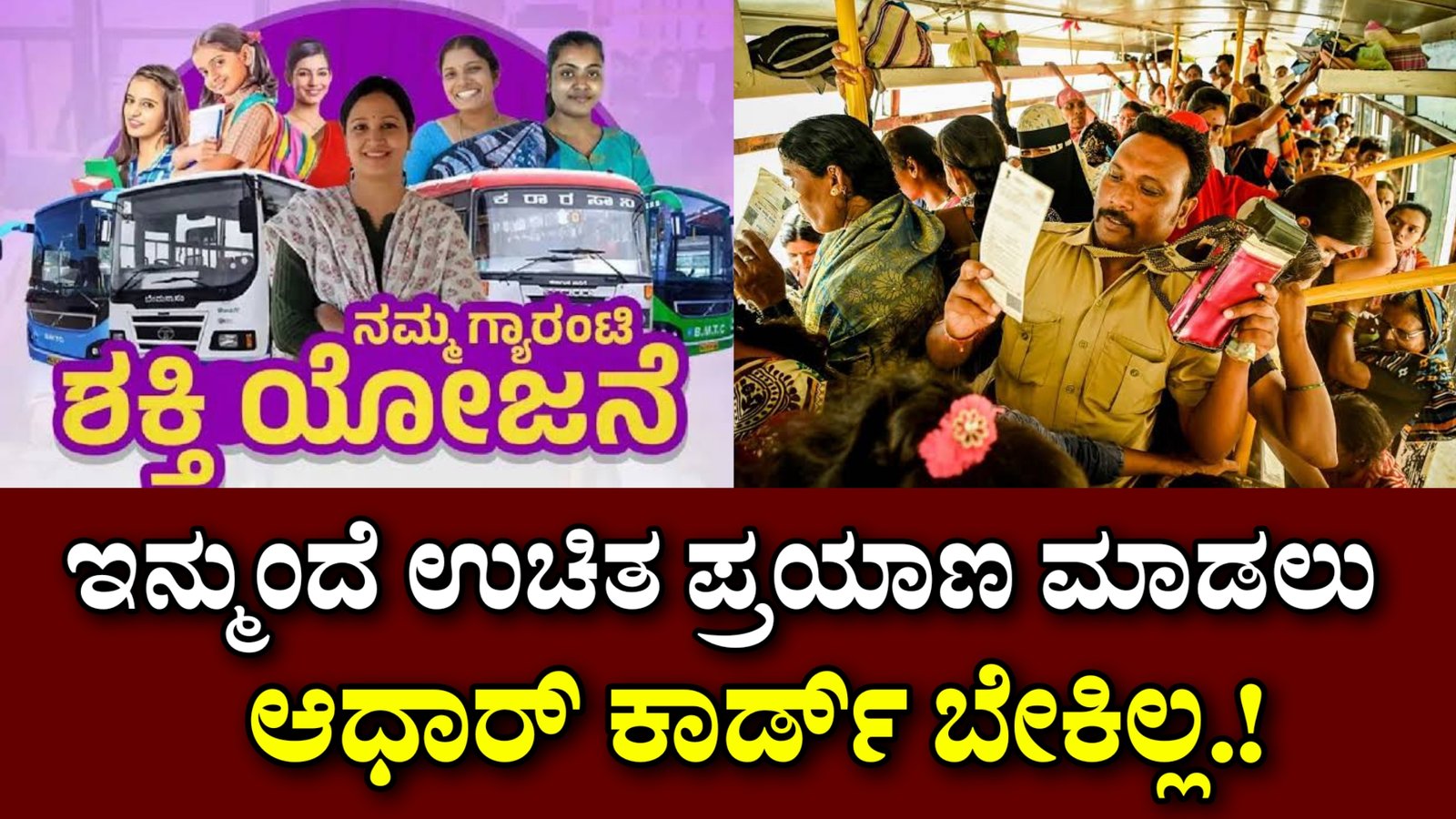 - ಮಹಿಳೆಯರಿಗೆ ಬಸ್ಸುಗಳಲ್ಲಿ ಉಚಿತ ಪ್ರಯಾಣಕ್ಕೆ ಆಧಾರ್ ಕಡ್ಡಾಯವಿಲ್ಲ