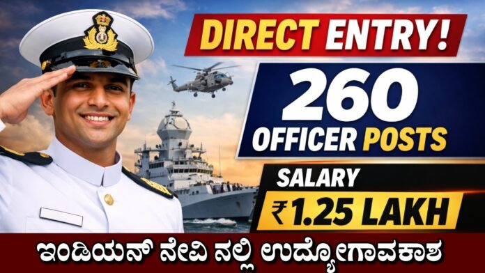 SSC ಪರೀಕ್ಷೆ ಇಲ್ಲದೆ ನೌಕಾಪಡೆಯಲ್ಲಿ ಆಫೀಸರ್ ಆಗುವ ಸುವರ್ಣಾವಕಾಶ: 260 ಹುದ್ದೆಗಳ ಭರ್ತಿ – ಯುವಕರಿಗೆ ಮತ್ತು ಯುವತಿಯರಿಗೆ ಭರ್ಜರಿ ಅವಕಾಶ