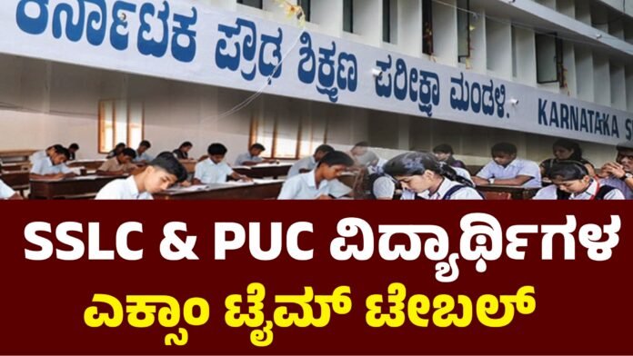 Time Table SSLC ಮತ್ತು PUC ಪರೀಕ್ಷಾ ವೇಳಾಪಟ್ಟಿ