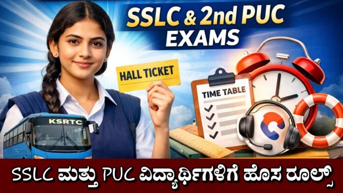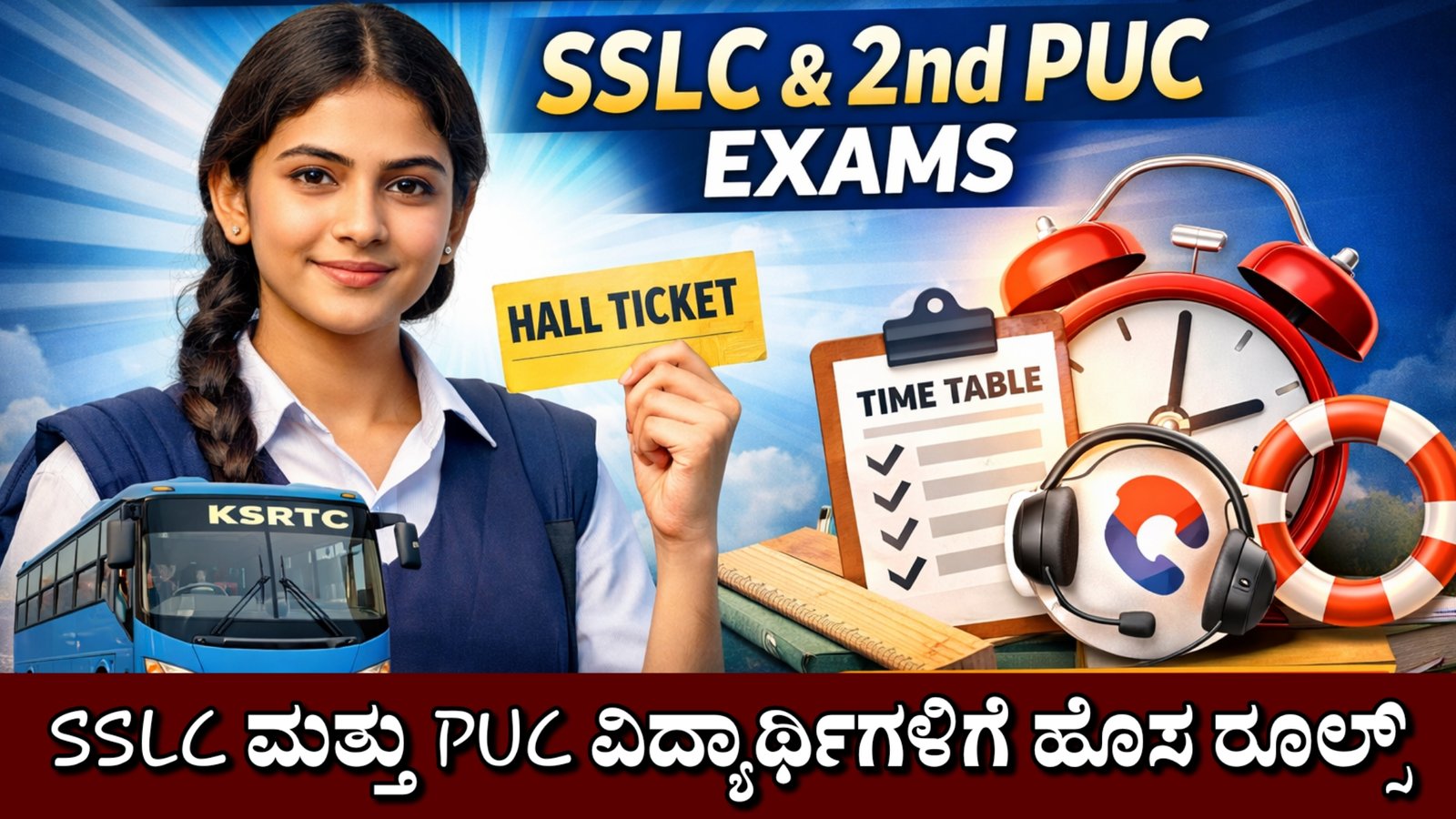 ಈ ಲೇಖನದಲ್ಲಿ ನೀವು 2026ರ SSLC ಮತ್ತು 2nd PUC ಪರೀಕ್ಷೆಗಳ ವೇಳಾಪಟ್ಟಿ, ಸರ್ಕಾರಿ ಸೌಲಭ್ಯಗಳು, ವಿದ್ಯಾರ್ಥಿಗಳಿಗೆ ಉಪಯುಕ್ತ ಸಲಹೆಗಳು ಮತ್ತು ಪೋಷಕರ ಪಾತ್ರದ ಬಗ್ಗೆ ಸಂಪೂರ್ಣ ಮಾಹಿತಿ ಪಡೆಯಬಹುದು.