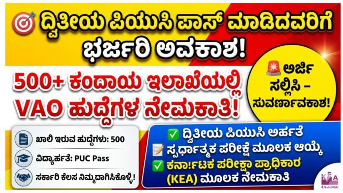 PUC ಪಾಸ್ ಮಾಡಿದವರಿಗೆ ಭರ್ಜರಿ ಅವಕಾಶ: ಕಂದಾಯ ಇಲಾಖೆಯಲ್ಲಿ 500 VAO ಹುದ್ದೆಗಳ ನೇಮಕಾತಿ ಸನ್ನಾಹ!