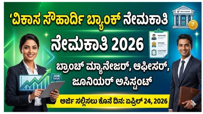 Vikas ವಿಕಾಸ್ ಸೌಹಾರ್ದ ಸಹಕಾರಿ ಬ್ಯಾಂಕ್ ನೇಮಕಾತಿ 2026 – ಸಂಪೂರ್ಣ ಮಾಹಿತಿ (Fresh Article)